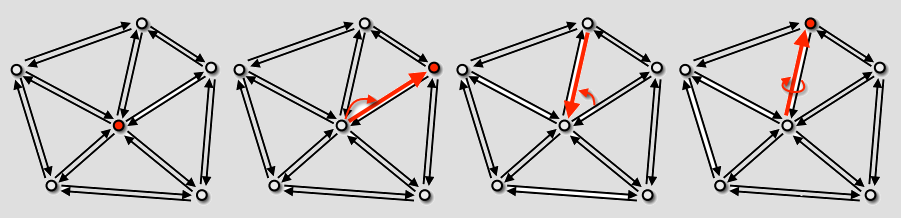Traversal of one-ring neighbors of a center vertex. From left to right: