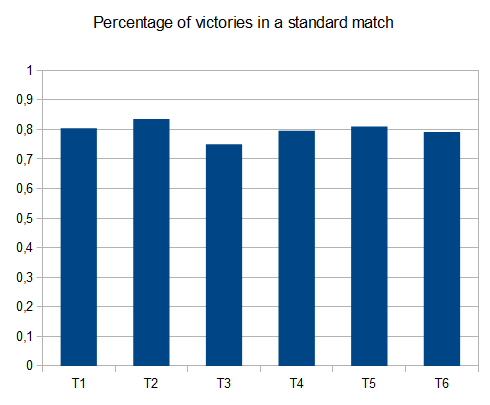 In case of T2, four tests in ten generate the 4096 tile with an average score of $\sim 42000$